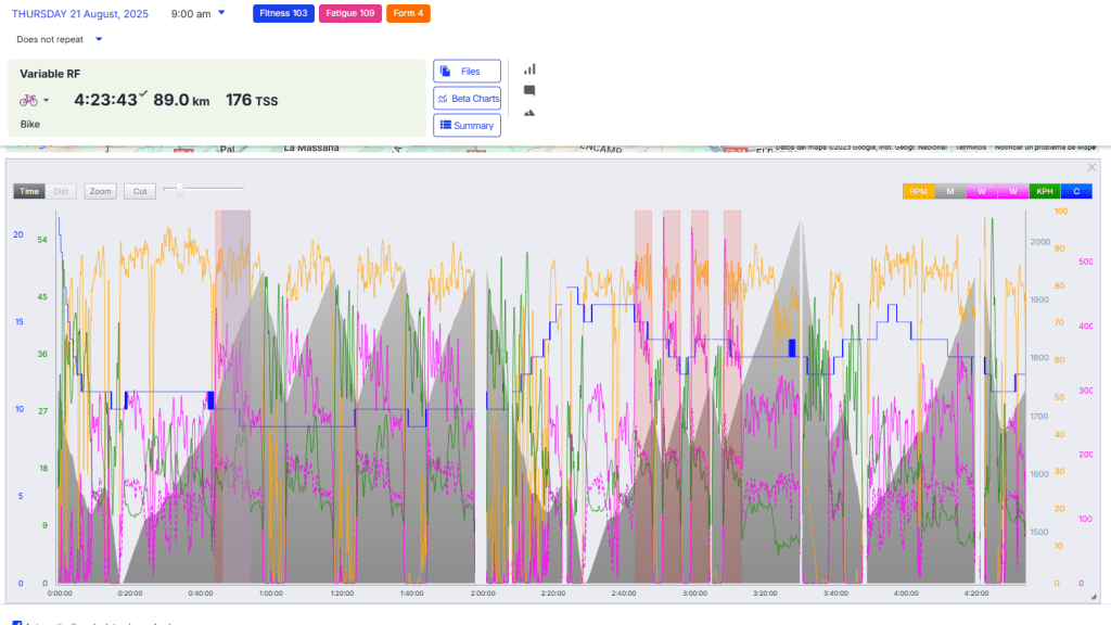 Durante el Half de Gandía, uno de mis triatletas tenía su estrategia perfectamente diseñada: potencia objetivo, márgenes por kilómetro, y un control preciso del esfuerzo para cada tramo.